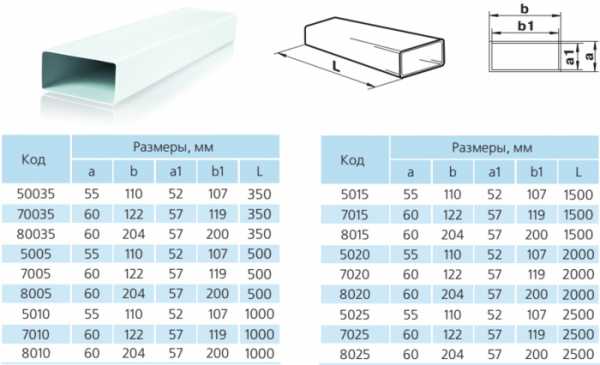 Прямоугольные пластиковые воздуховоды для бытового применения бывают следующих размеров: