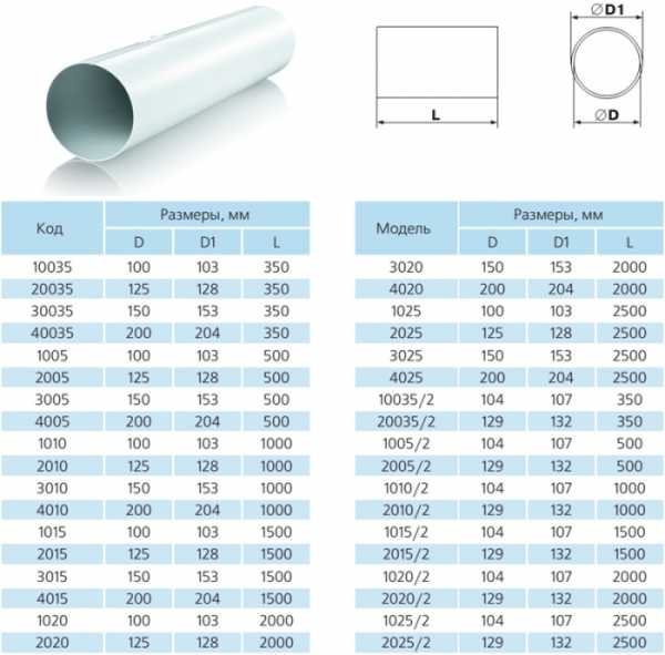 Но есть и гораздо больших размеров — до 2,4 метров в диаметра — для производственных помещений. Продаются круглые вентиляционные трубы отрезками по 500 мм, 1000 мм, 1500 мм, 2000 мм, 2500 мм.