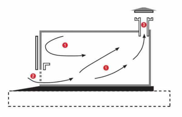 Забор отработанного воздуха происходит через вытяжную трубу, в канал которой установлен вентилятор достаточной мощности.
