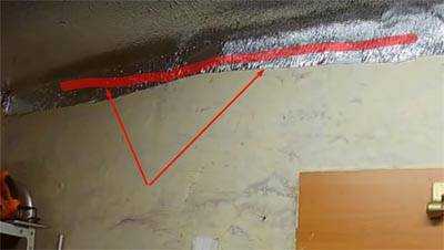 ![]() | Маркером (вдоль верхнего угла) отмечено место, куда в последствии будет установлена пластиковая труба вытяжки с отверстиями. Это позволит лучше удалять угарный газ из помещения при работе двигателя. |