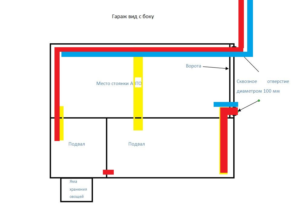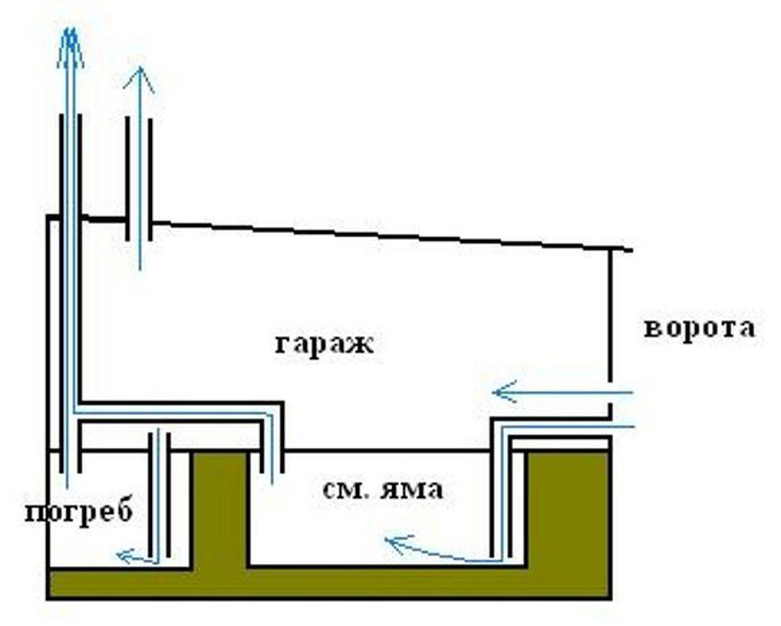 - Обустройство подвала вентиляцией проходит через или с помощью гаражного пространства.