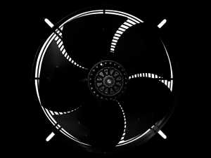 Осевой вентилятор — самый простой и распространенный прибор. В цилиндрическом кожухе располагается крыльчатка с лопастями, расположенными под углом к плоскости вращения. Во включенном состоянии воздух захватывается вращающимися лопастями и движется в осевом направлении. Конструкция показывает высокую эффективность и способна обеспечить большой объем воздухообмена за малый промежуток времени. Однако это справедливо только при небольших аэродинамических сопротивлениях вентиляционных каналов, то есть они должны иметь достаточный диаметр и оставаться чистыми. На нижних этажах высотных зданий этот тип прибора может не справляться со своими задачами.