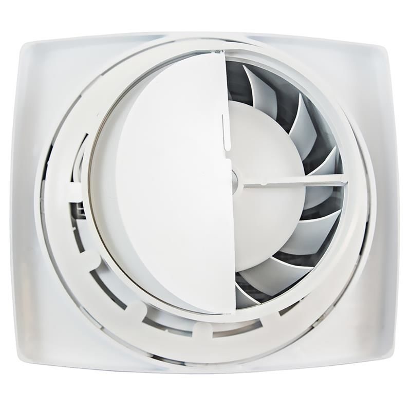Этот вентилятор предназначен для тихой работы, но не для того, чтобы оставаться незамеченным. И да, при мощности в 85 м3/час, уровень шума, который он создает едва заметен — всего 26,5 дБ — не разбудит ночью при резком включении и не будет отвлекать в дневное время. Внешне выполнен в минималистическом стиле, но с “изюминкой”. Вентилятор поставляется с 4 или 5 разноцветными декоративными накладками, которые продолжают и дополняют интерьер помещения. Вентилятор комплектуется обратным клапаном, поэтому запахи из вентиляционного канала не попадут в помещение в то время, пока вентилятор будет выключен. Работает этот вентилятор в паре с выключателем света, поэтому является достаточно экономным.