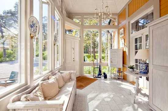 Веранда представляет собой небольшую конструкцию на облегченном фундаменте. Это что-то среднее между гостиной, беседкой в саду или открытой террасой и отличное дополнение к загородным апартаментам, что украшает архитектурное остекление и ансамбль и защищает вход в дом от плохих погодных условий. Соответственно строительным стандартам, постройку относят к категории неотапливаемых.