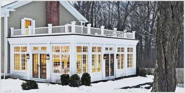 Веранды могут быть застекленными, открытыми (пристройки), обогреваемыми и не обогреваемыми. Кроме того, что говорили выше, летом на крытой террасе можно провести отдых и попить чай, а в зимнее время года любоваться красотой.