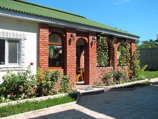 Поверх гидроизоляции заливают слой бетона, не более 150 мм. Это бетонное основание должно получиться ровным по горизонтали, поскольку на него будет выкладываться кирпич. Высота кирпичных стоек выбирается с тем условием, чтобы пол веранды был ниже уровня полов в доме, примерно на 0,3 м. А сама пристройка должна заходить под края крыши, создавая с ней единое целое.