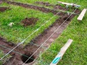 - Делаем разметку и готовим ямки (50х50 см) глубиной около 1 м под столбчатый фундамент. Этого хватит для легкой пристройки. Если же нагрузка на стены будет большая, то следует заливать ленточный фундамент.