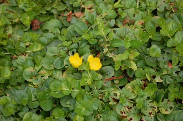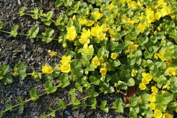 В природных условиях данный вид можно повстречать на территории Японии, Европы и Северной Америки. Этот вид предпочитает расти в тенистых рощах, на окраинах болот, на пойменных лугах, а также по берегам различных водоемов и рек. Это многолетнее растение является почвопокровным. Длина лежачего стебля примерно 0,3 м. Супротивнорасположенные листовые пластины овальной формы имеют короткие черешки и длину около 25 мм. Одиночные пазушные цветки окрашены в желтый цвет и в диаметре достигают 25 мм. Когда растение зацветет, напрямую зависит от уровня освещенности. Если кустики посажены на хорошо освещенном участке, то начало цветения придется на последние дни мая либо июнь. Этот вид может образовывать покров и на крутых склонах, и на ровной поверхности. Наибольшей популярностью пользуется сорт Ауреа: окрас листовых пластин зелено-желтый, данное растение не обладает высокой морозоустойчивостью по сравнению с основным видом.