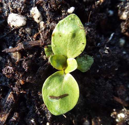 Субстрат хорошенько увлажняют с помощью мелкого распылителя и высевают по его поверхности семена. Прикрывать слоем земли семена не стоит — их просто слегка придавливают кончиками пальцев в поверхность земли. Для поддержания равномерно высокой влажности контейнер накрывают пластиковой прозрачной крышкой или стеклом. Сеянцы держат в притененном от прямых солнечных лучей месте с температурой около 15° C. Спустя 10 — 14 дней после посева можно заметить появление первых ростков — в это время укрытие ежедневно приподнимают и проветривают растения, постепенно увеличивая время проветривания. С появлением 2 — 4 настоящих листочков рассаду пикируют — высаживают в отдельные небольшие стаканчики с питательным и рыхлым субстратом. Через 10 — 14 дней после проведения пикировки можно подкормить молодые кустики сильно разбавленным удобрением с повышенным содержанием азота.