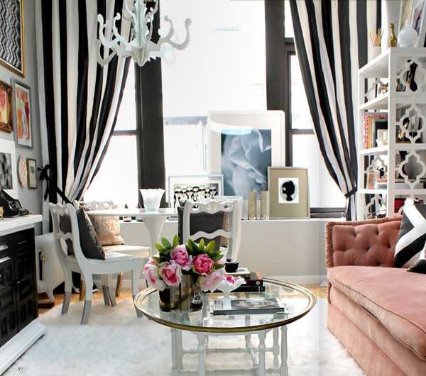 Гардины в черно белую полоску хорошо впишутся практически в любой дизайн комнаты