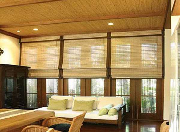 Все эти проблемы можно решить путем грамотного обрамления окна, используя визуальные методы к примеру: вертикальные полосы на портьерах, шторы с прямыми многочисленными складками,вертикальные ламели, бамбуковые шторы и так далее.