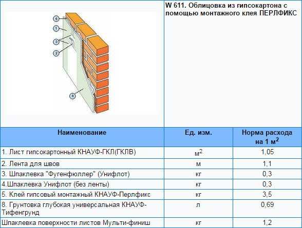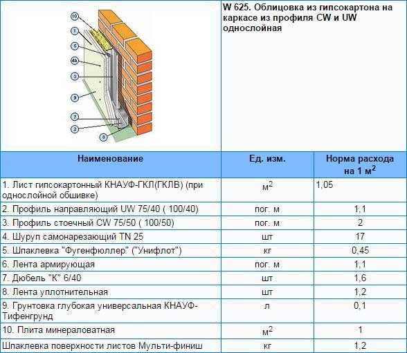 Расход материалов на 1м2 при работе с гипсокартонными листоами