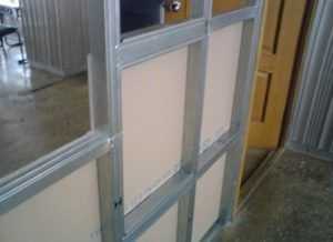 Перегородки могут быть созданы с одним или несколькими слоями обшивки, закрепленные на металлическом каркасе или на специальном клеевом составе непосредственно к поверхности стены. Толщина, ширина и высота такой конструкции определяются в ходе работы над проектом самой перегородки.