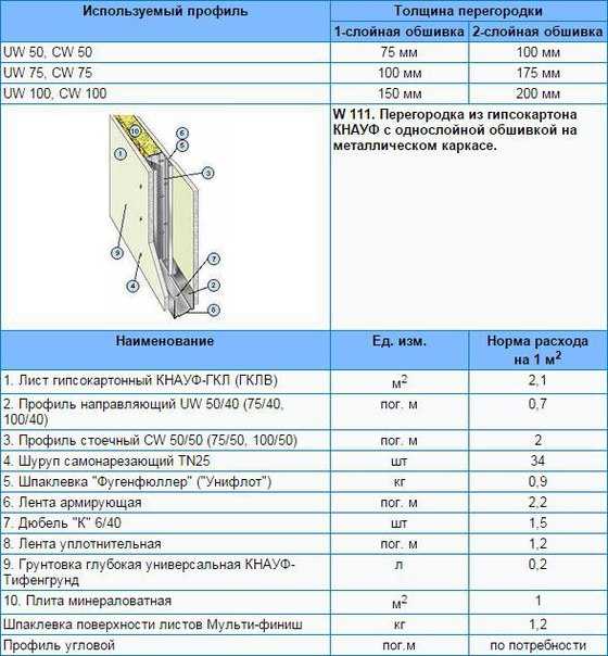 Калькулятор расчета перегородки из гипсокартона КНАУФ с однослойной обшивкой на металлическом каркасе