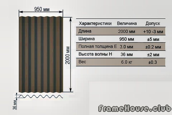 Теперь озвучим стандартные параметры листа ондулина: