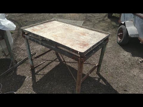 Теперь, что касается верхней части стола. Для этого лучше всего использовать лист металла толщиной не менее 4 мм. Причем обратите внимание, что если лист кривой, то его необходимо будет выровнять.