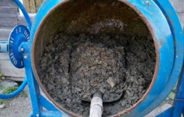 3. Готовится смесь для формовки. Для этого в бетономешалке вначале перемешиваются щепа с водой, с добавлением «жидкого стекла» (не более 1% от общей массы планируемого количества раствора). При получении полужидкой кашицы начинают добавлять цемент (не ниже М-400) и постепенно увеличивать количество воды. Общая пропорция должна выдерживаться в таких пределах: 4 части воды на 3 части древесины и 3 части цемента.