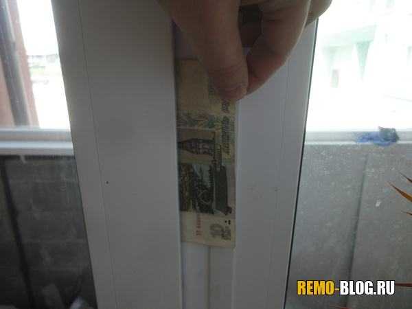 Для проверки степени прижатия двери к дверной коробке, берется лист бумаги, и зажимается между рамой и коробкой двери. Затем бумага вытаскивается, а усилие, с которым это делается, запоминается. Как регулировать пластиковые окна: выполняем. Таким образом, проверяется весь периметр двери.