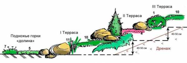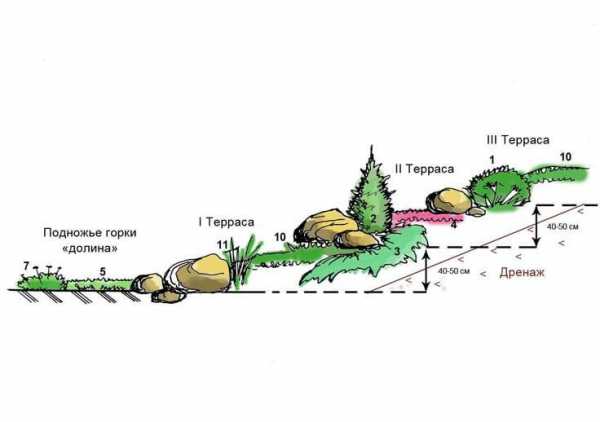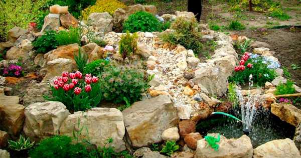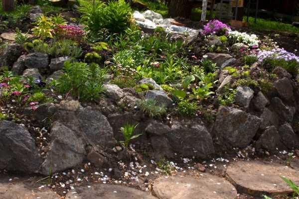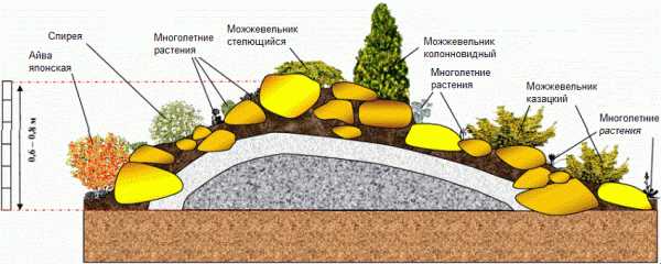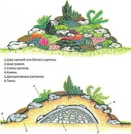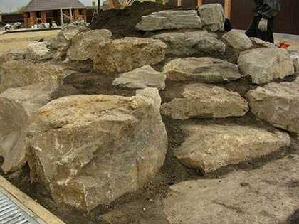 ΠΊΠ°ΠΌΠ½Π΅ΠΉ Π²ΡΠ±ΠΈΡΠ°ΡΡ ΡΠ°ΠΌΡΠΉ ΠΊΡΡΠΏΠ½ΡΠΉ ΠΈ ΠΊΡΠ°ΡΠΈΠ²ΡΠΉ Π±ΡΠ»ΡΠΆΠ½ΠΈΠΊ. ΠΠ½ Π±ΡΠ΄Π΅Ρ ΠΎΡΠ½ΠΎΠ²Π½ΡΠΌ Π² Π½ΠΈΠΆΠ½Π΅ΠΌ ΡΡΡΡΠ΅. ΠΠ°ΠΌΠ΅Π½Ρ Π΄ΠΎΠ»ΠΆΠ΅Π½ ΡΡΠΎΡΡΡ ΡΡΡΠΎΠΉΡΠΈΠ²ΠΎ. ΠΠ»Ρ ΡΡΠΎΠ³ΠΎ ΠΌΠΎΠΆΠ½ΠΎ ΠΏΠΎΠ΄ΡΡΠΏΠ°ΡΡ Π³ΡΡΠ½Ρ ΠΈΠ»ΠΈ Π³ΡΠ°Π²ΠΈΠΉ. ΠΠ»Π°ΡΡΠΈΡΠ΅ΡΠΊΠ°Ρ Π°Π»ΡΠΏΠΈΠΉΡΠΊΠ°Ρ Π³ΠΎΡΠΊΠ° Π½Π° Π΄Π°ΡΠ΅ ΡΠΎΡΡΠΎΠΈΡ ΠΈΠ· Π½Π΅ΡΠ΅ΡΠ½ΠΎΠ³ΠΎ ΠΊΠΎΠ»ΠΈΡΠ΅ΡΡΠ²Π° ΡΡΡΡΠΎΠ². ΠΠ΅ΠΆΠ΄Ρ ΡΡΠΈΠΌΠΈ ΡΡΡΡΠ°ΠΌΠΈ ΡΠΊΠ»Π°Π΄ΡΠ²Π°ΡΡ Π²Π»Π°ΠΆΠ½ΡΡ ΠΏΠΎΡΠ²Ρ, ΠΊΠΎΡΠΎΡΡΡ Π½Π΅ΠΎΠ±Ρ