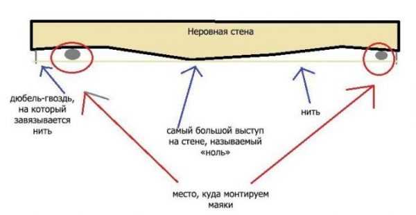 Его применяют в том случае, если стены имеют дефекты: неровности, углубления, выступы. Маяки следует подбирать, исходя из того, какой материал использован для изготовления стен: