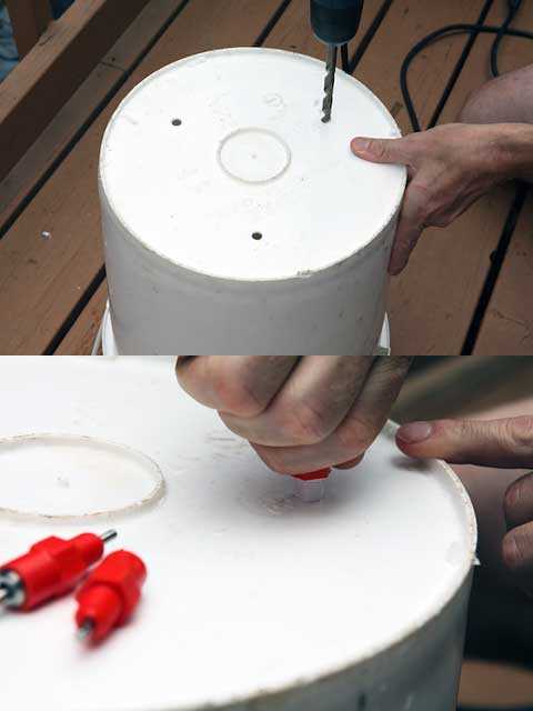 Важно! Толщину сверла подбирайте, исходя из диаметра купленных ниппелей, чтобы конструкция не протекала.