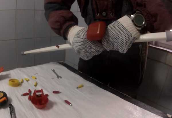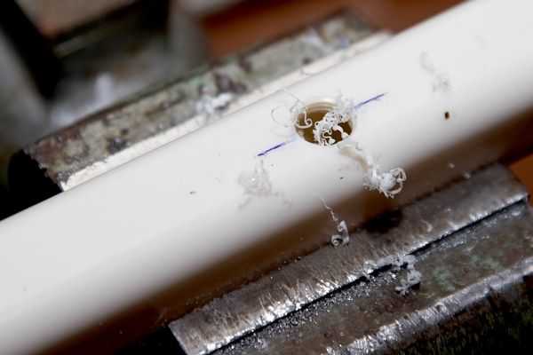 - необходимо просверлить в пластиковой трубе отверстия и нарезать в них резьбу;