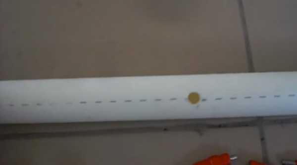 Берем пластиковую трубу 20 – 30 мм диаметром, отсчитываем 60 см. Маркером ставим черточки через каждые 10 см. (Будущие ниппели).