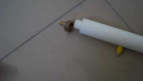 - Заглушкой нужно закрыть одну сторону трубы. На вторую необходимо одеть переходник, на который будет крепиться шланг.