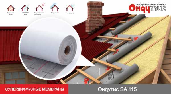 Уложите подкладочную гидроизоляцию для защиты от протечек. Здесь можно использовать супердиффузионные мембраны Ондутис. Следите за тем, чтобы нахлест полотен был не менее 30 см.