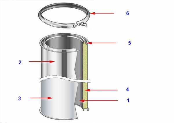 Схема строения сэндвич-элемента для дымохода