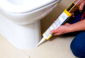 Теперь необходимо обработать место соприкосновения пола с унитазом. На многих видео об установке унитаза самостоятельно вы узнаете, что идеальных поверхностей не бывает. Это касается как плитки, так и унитаза. Чтобы под него не затекала жидкость и не скапливалась под ним грязь, по контуру необходимо обработать герметиком.
