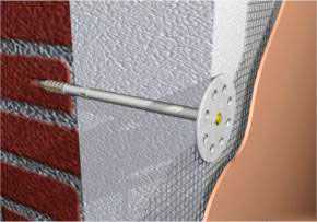 На лист пенопласта наносится клей в пяти точках, и он прикладывается к стене, затем сквозь пенопластовую панель в стене сверлятся отверстия для грибков–дюбелей и лист дополнительно крепится на них. Для одного листа достаточно 5 (пяти) таких грибков, хотя ошибочно полагают, что достаточно и четырёх. Перед шпаклёвкой стены необходимо заделать места стыковки пенопласта, а также сами грибки.