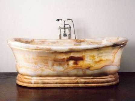 Для изготовления ванн используют и более экзотические материалы – фаянс, дерево, мрамор, стекло. Изысканные дизайнерские фаянсовые и стеклянные ванны чрезвычайно дороги и непрактичны, но невероятно красивы и выглядят статусно. Деревянные модели больше выполняют эстетическую функцию, чем практическую, а мрамор может себе позволить только очень зажиточный человек.