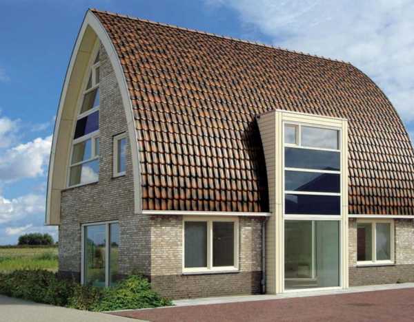 Свое название эта кровельная конструкция получила за счет скругленной формы стропильной системы. Никаких острых углов и резких переходов. Отсюда и сложность сооружения. Поэтому на таких крышах используют только штучные материалы, чаще черепицу.