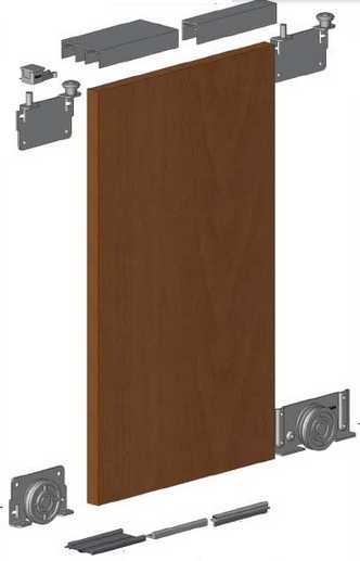 Принцип работы всех раздвижных дверей одинаковый. На полотна фиксируется подвески с роликами, которые двигаются по верхним или нижним рельсовым направляющим. Разница заключается в материалах изготовления, наличия или отсутствия профилей, количества рельсовых направляющих.
