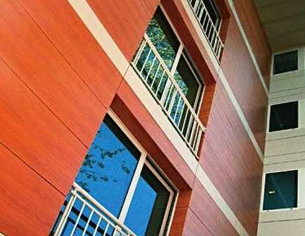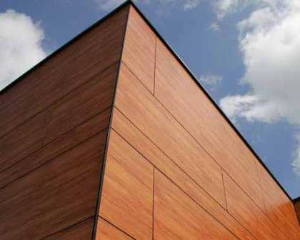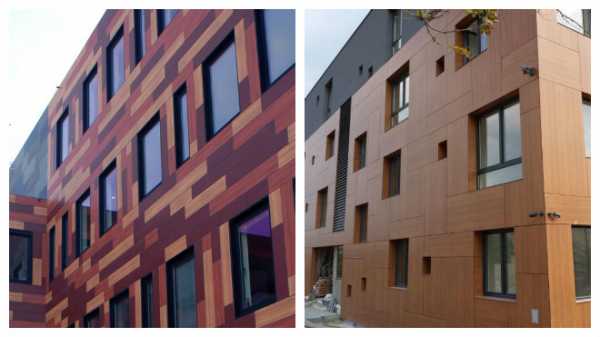 Фасадные панели Деке от немецкого производителяПродолжая перечень достоинств, отметим, что они имеют большое разнообразие оттенков, помимо стандартных цветовых решений, здесь можно найти и необычные расцветки, такие как киви, банан, халва и другие.