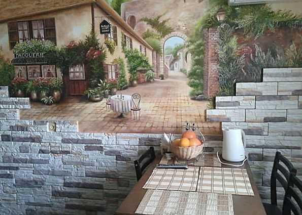 Сам рисунок наносится на синтетическое, натуральное, флизелиновое полотно. Пейзаж или натюрморт – лучшие сюжеты для таких фресок.
