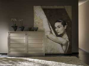 Silver. Мелкий рельеф широкой кисти придаёт фактуре «Silver» элегантность и изящность. Также на полотне присутствует слегка заметный эффект мерцания, который придаст любому интерьеру особый шик и красоту. Благородный оттенок серебра создаёт легкий эффект объемности изображения. Особенно эффектно эта фактура смотрится на полотнах с монохромным или солнечным тёплым изображением. Фрески на фактуре «Silver» сделают Ваш интерьер поистине уникальным, поразив переливами света и игривым мерцанием серебряных частичек в углублениях фактуры.