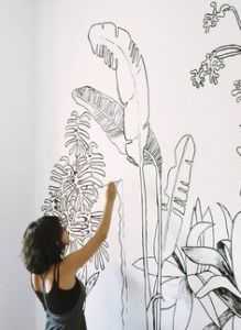 - после высыхания фона рисунок переносится с эскиза на стену;