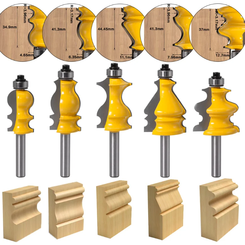 Такие фрезы для ручного фрезера по дереву в основном используются для красивой, фигурной обработки дерева в любой части будущего изделия. Недостатком этого вида фрез является необходимость работать по определенному шаблону, без которого получить правильную форму паза практически невозможно.