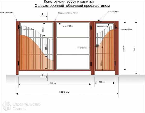 Конструкция калитки из профнастила с козырьком