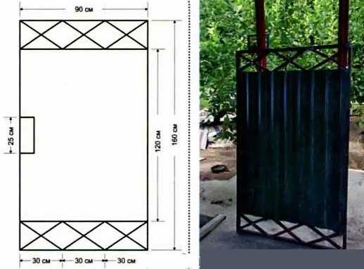 - Теперь можно собирать каркас. Общую ширину проема разделите на две равные части. Для сооружения каркаса можно использовать профильную трубу. Это отличный материал, так как имеет небольшой вес.