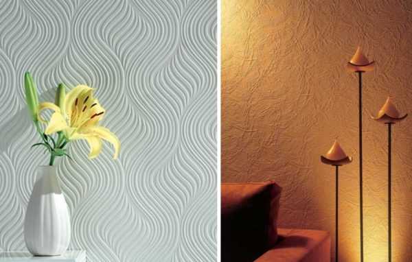 Эти материалы великолепно подходят для применения обоев под окрашивание, а также фактурной штукатурки. Высыхая, латексная краска образует тоненькую пленку, которая способна равномерно покрыть любую фактуру поверхности и сохранить ее.