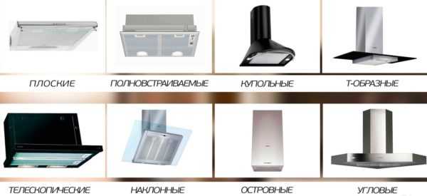 Основные виды кухонных вытяжек:
