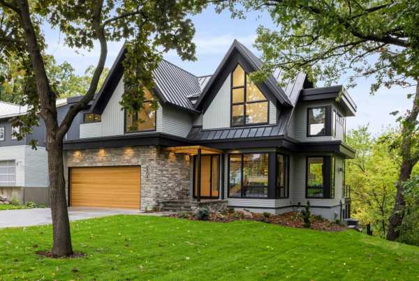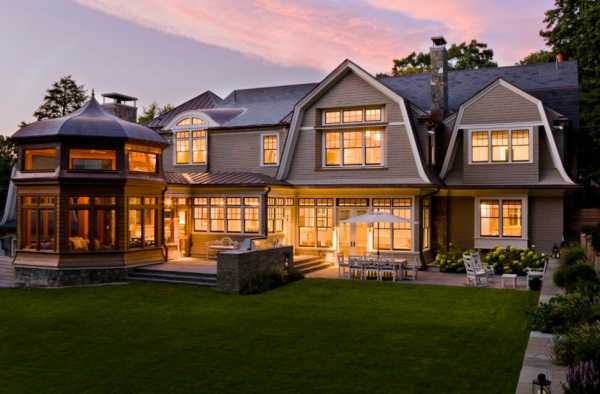 Интересная крыша сложной конфигурации, мансарда над гаражом, большая масса остекления — современные нормандские дома красивы и функциональны одновременно.