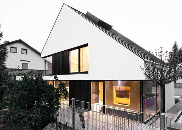 Западные архитекторы предлагают множество необычных решений, одно из них — частный дом с асимметричной двускатной крышей и мансардой.