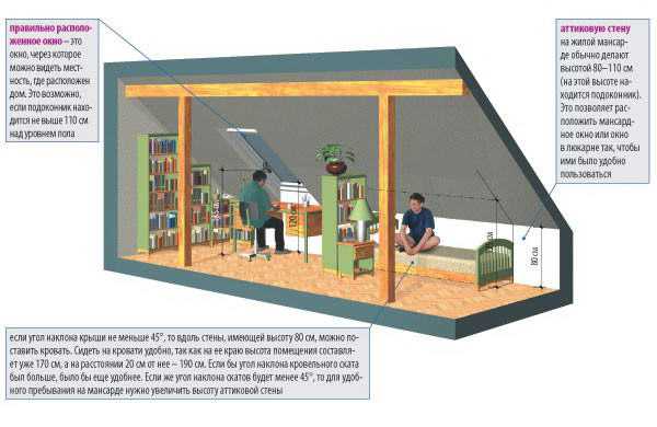 Мансардная крыша имеет и определенные недостатки. Далее приведены рекомендации, которые следует учитывать, выбирая стройматериал и мебель для верхней комнаты.