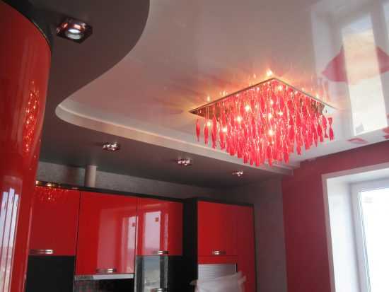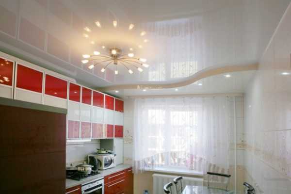 Натяжной потолок на кухне — 100 фото идей дизайна освещения потолков