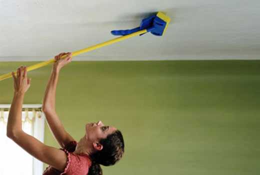 Лучше протирать потолок губкой и моющим средством каждый месяц – тогда не придется отчищать многолетний жировой налет. Разводы убираются обычной сухой салфеткой. А восстановить блеск глянца поможет раствор из воды и нашатырного спирта.