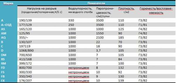 Таблица сравнения пароизоляционных пленок